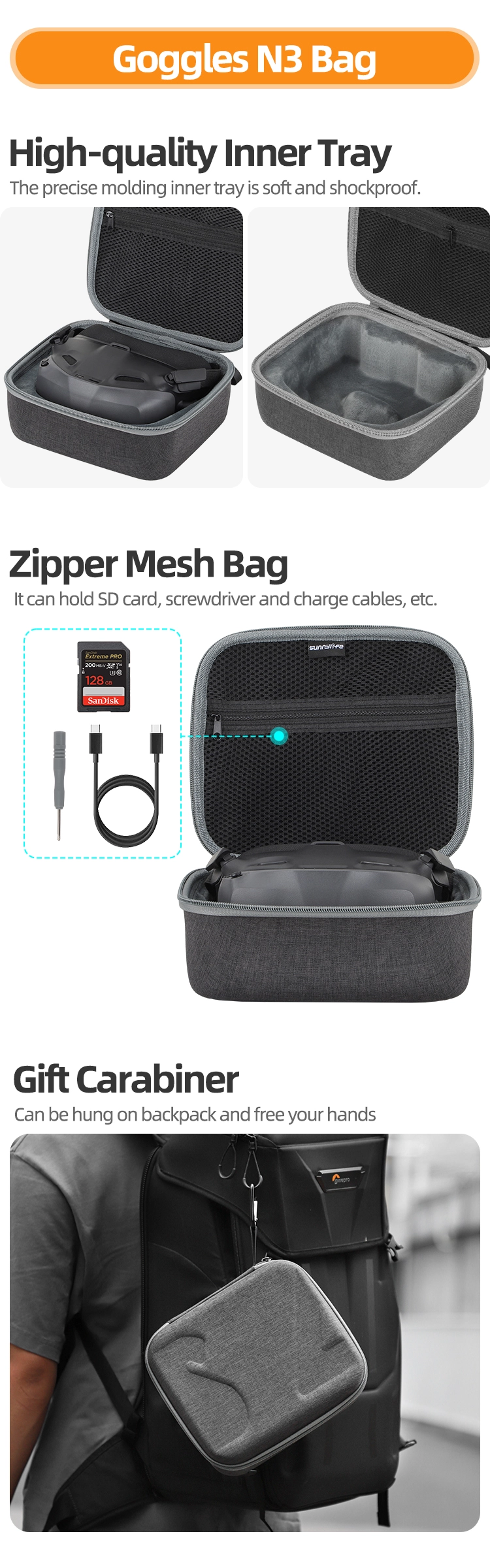 - Zipper mesh bag can hold lens filter, spare propellers, screwdriver and charge cables, etc.