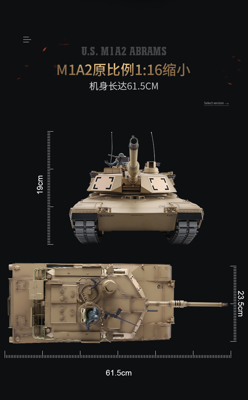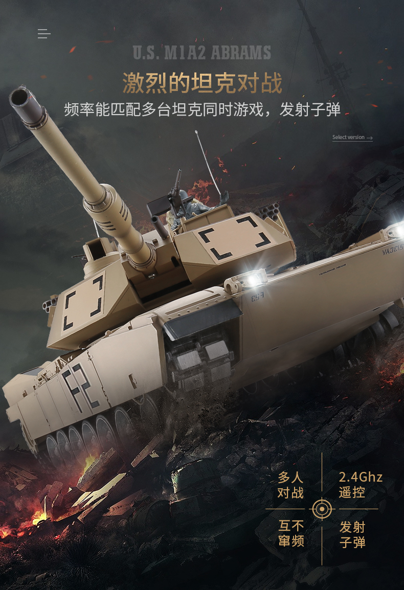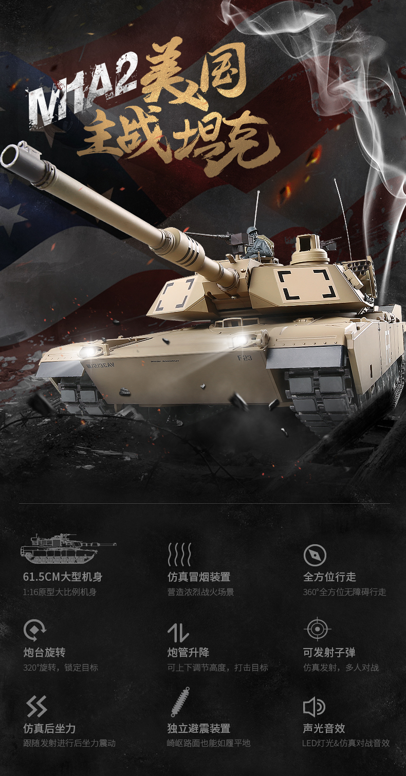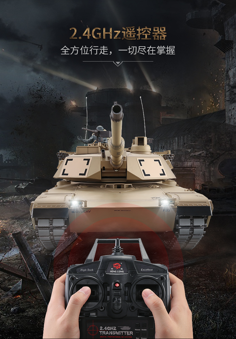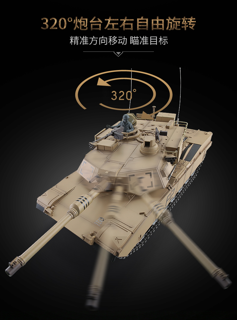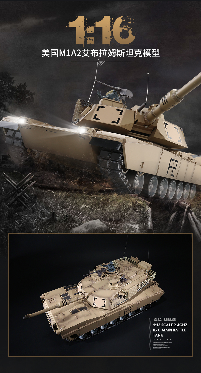 [酷飛] 恆龍遙控坦克金屬M1A2超大成人充電對戰軍事模型男孩玩具越野戰車 美式M1A2-沙漠色