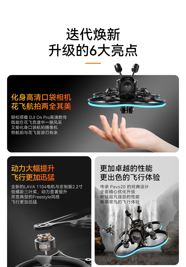 Pavo20 Pro Brushless Whoop Quadcopter 重新定義輕量級 Freestyle FPV 性能,完美兼容 DJI O3/O4 Pro,具備 LAVA 1104 動力與 2.2 吋螺旋槳,提供超凡推力與高達 6'40'' 續航,捕捉流暢的電影級畫面。Pavo20 Pro Brushless Whoop Quadcopter 重新定義輕量級 Freestyle FPV 性能,完美兼容 DJI O3/O4 Pro,具備 LAVA 1104 動力與 2.2 吋螺旋槳,提供超凡推力與高達 6'40'' 續航,捕捉流暢的電影級畫面。