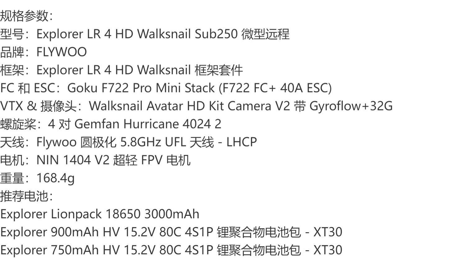 FLYWOO 探索者LR 四軸 4寸 4S 蝸牛 阿凡達FPV穿越機 Walksnail
