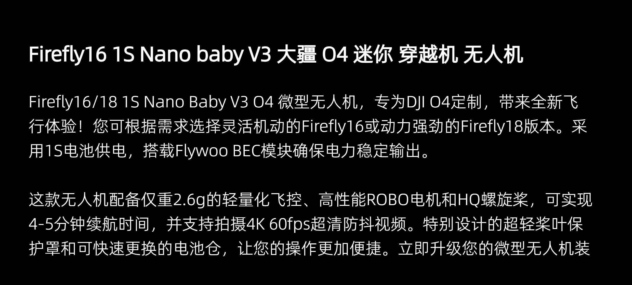 Flywoo 螢火蟲Firefly 16 1S V3 O4 廣角鏡頭迷你穿越機