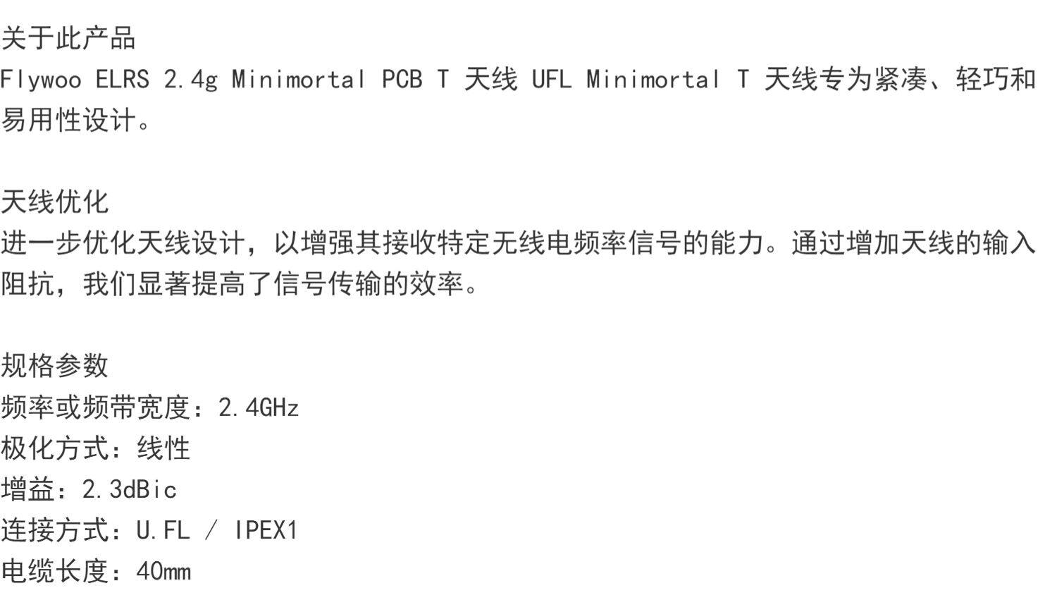 Flywoo ELRS 2.4g 迷你 PCB T形 天線 接收機 專用 UFL