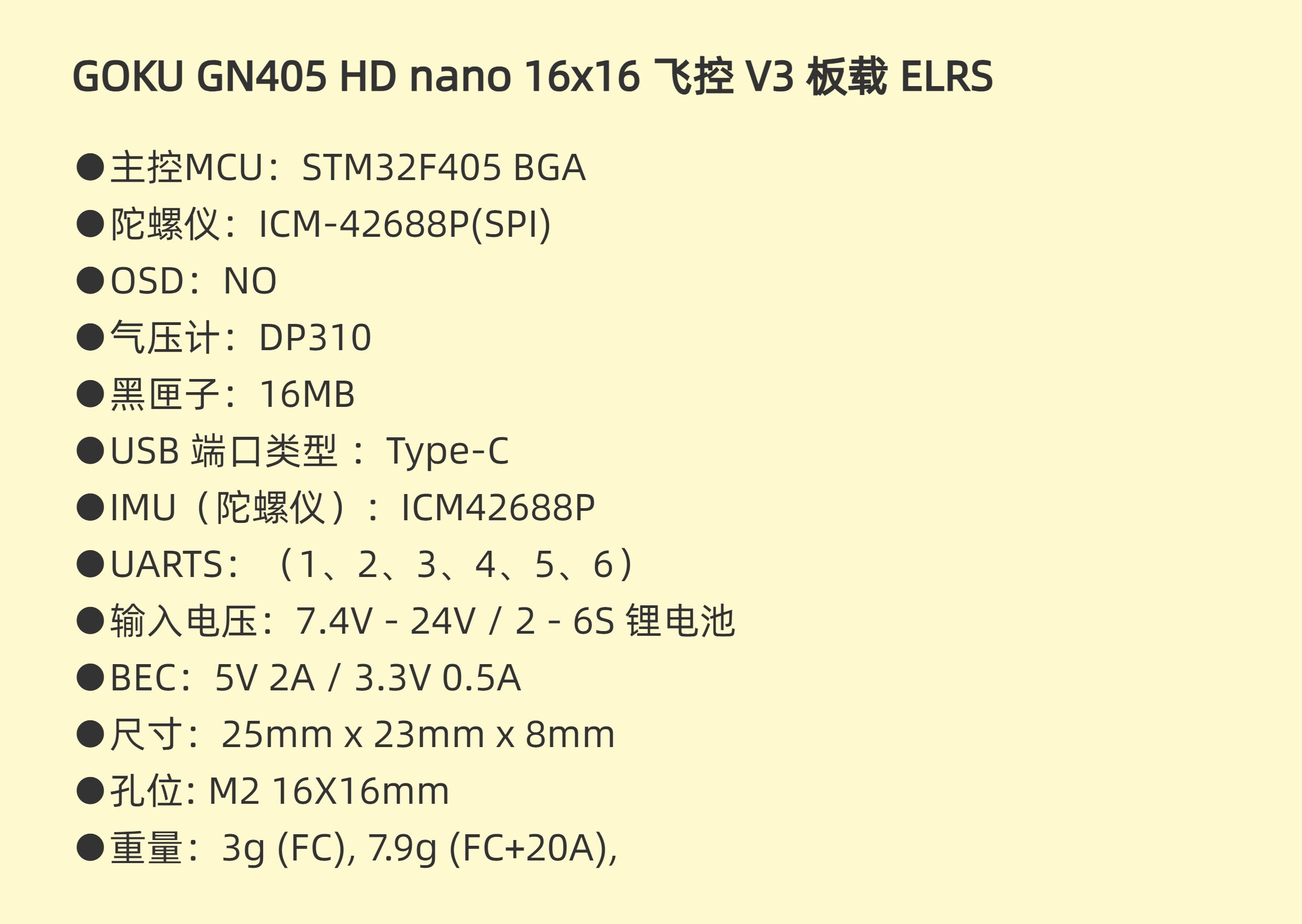 Flywoo GOKU GN405 Nano 16x16 20A 飛塔 V3 板載 ELRS