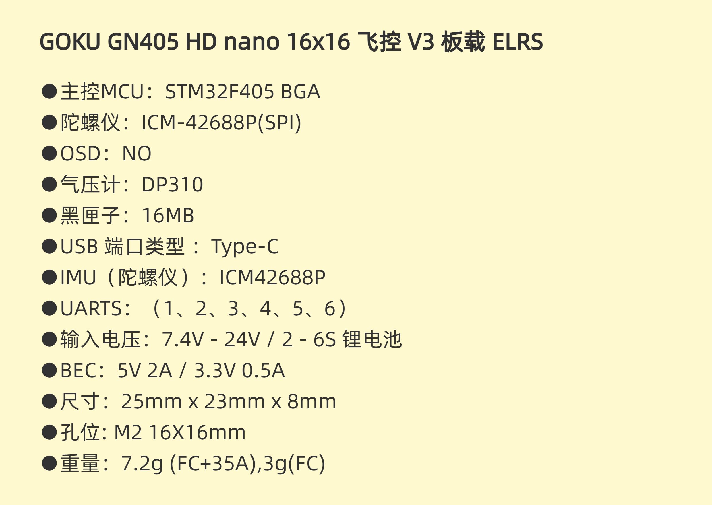 Flywoo GOKU GN405 Nano 16x16 35A 飛塔 V3 板載 ELRS