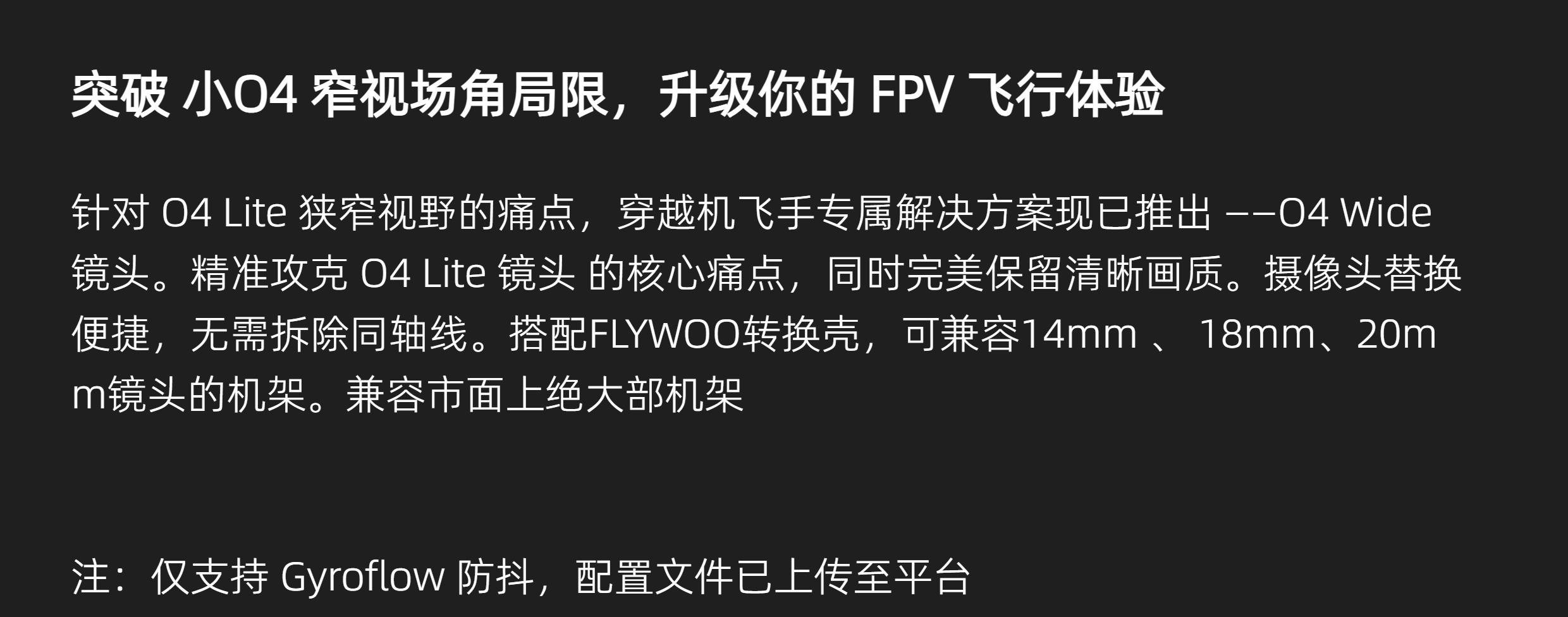 FLYWOO O4 Wide 155° 增廣超廣訂製鏡頭適合大疆圖傳