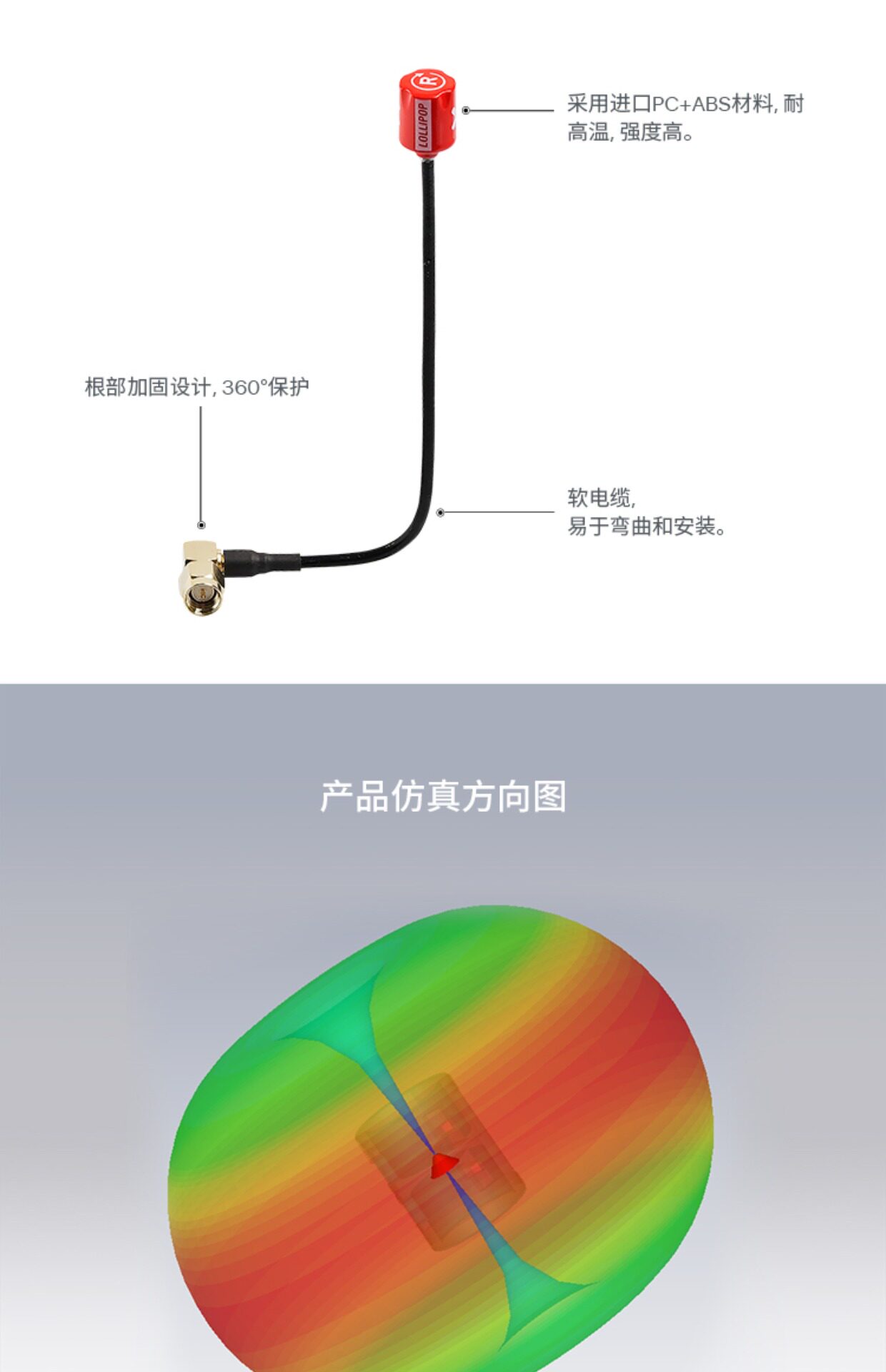FOXEER 微棒棒糖加長天線 FPV眼鏡專用 5.8G右旋彎頭SMA 15CM 1根