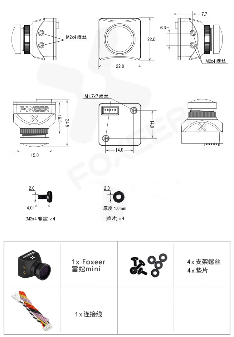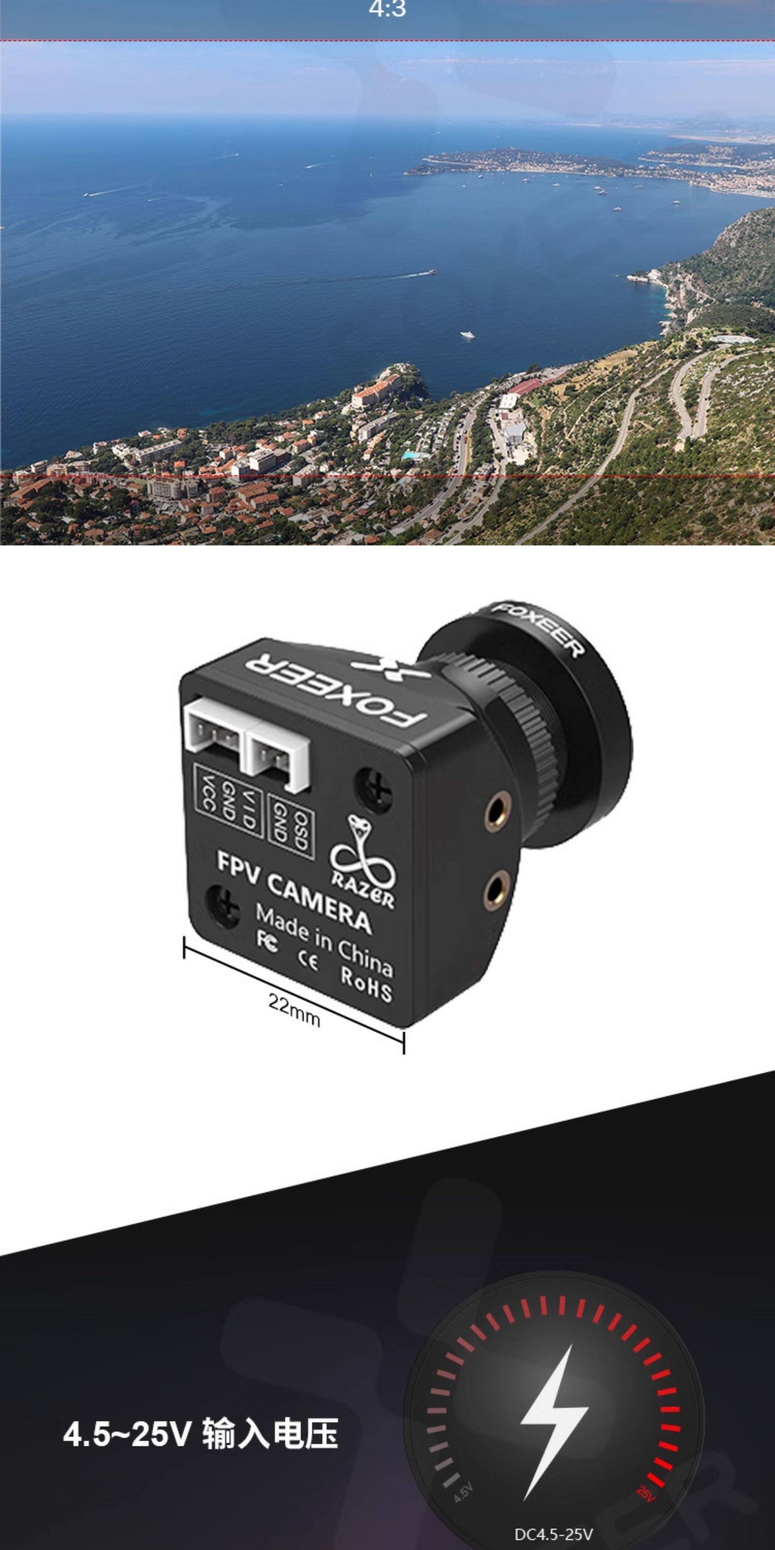 FOXEER 雷蛇 Razer v3 攝像頭1200TVL 尺寸22mm 2.1鏡頭 4:3
