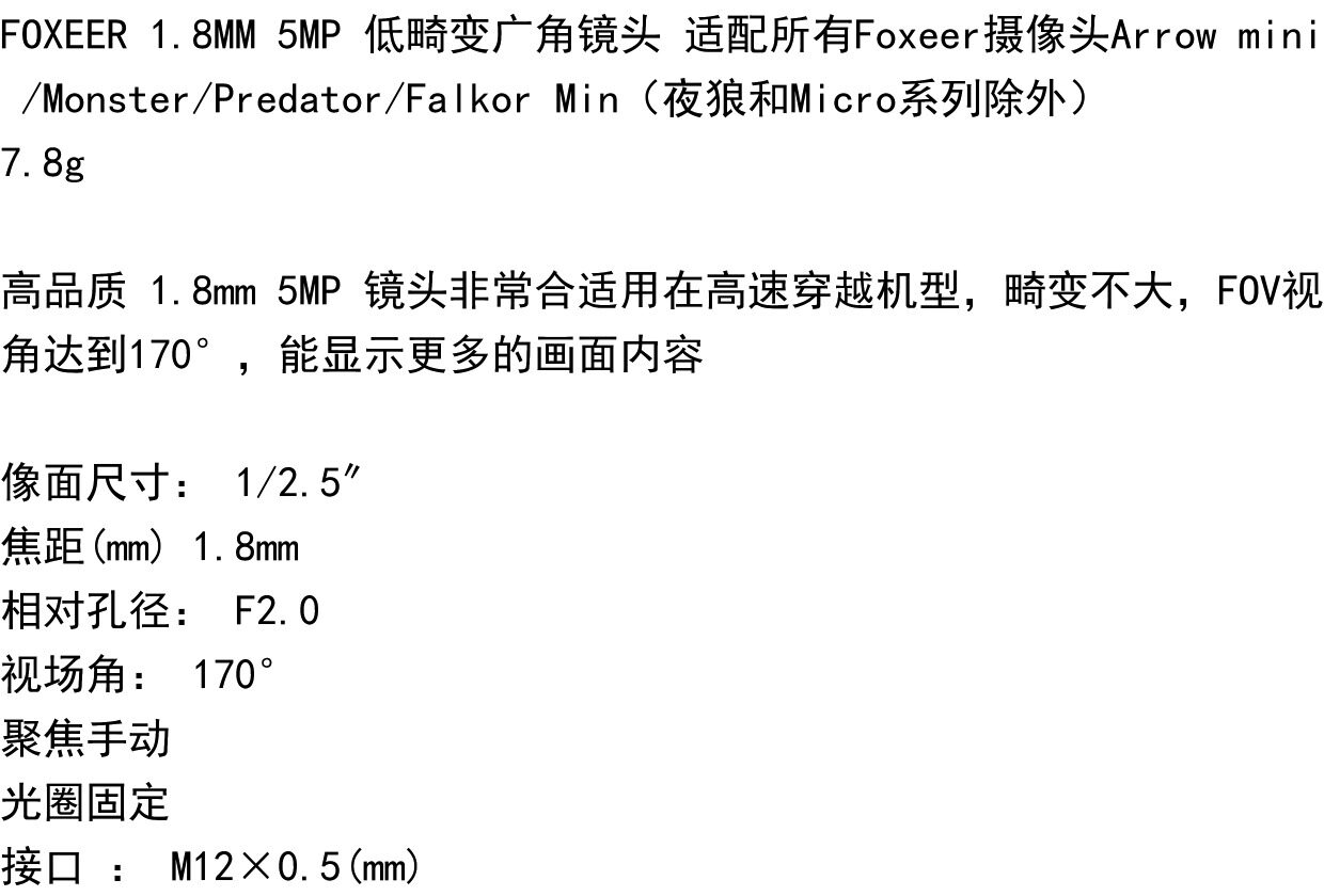 FOXEER 1.8mm M12 穿越機鏡頭500萬像素 170° 除微型外 22mm可用