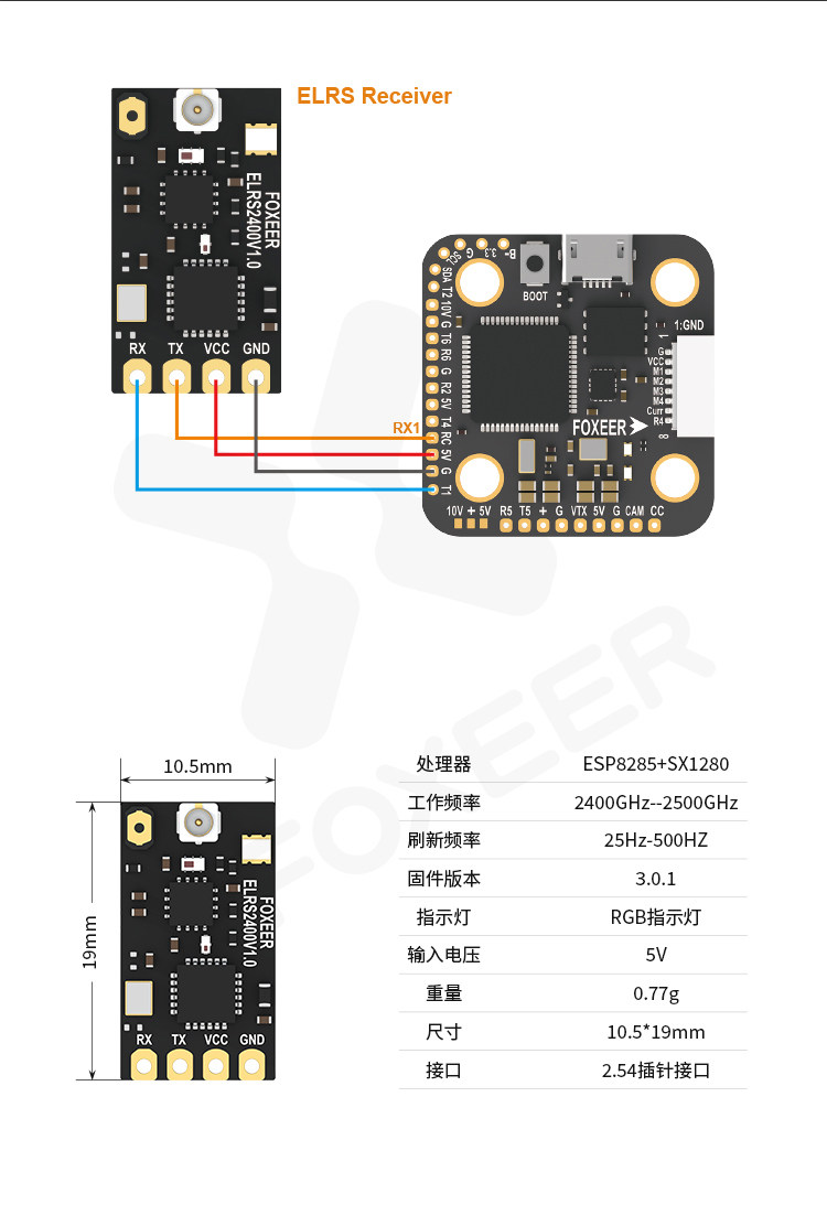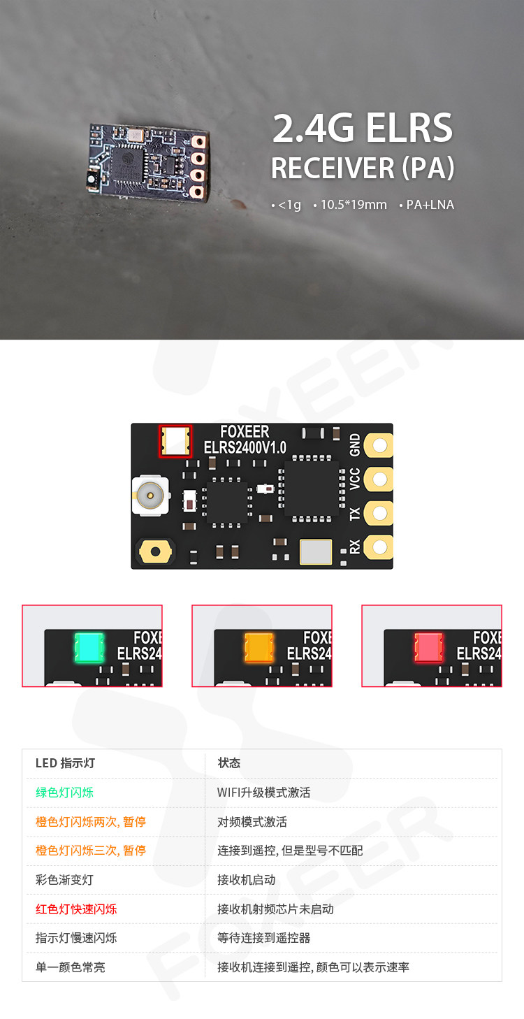 FOXEER 2.4G elrs 接收機 LNA 穿越機 FPV 含T天線 0.77g 遠距5V