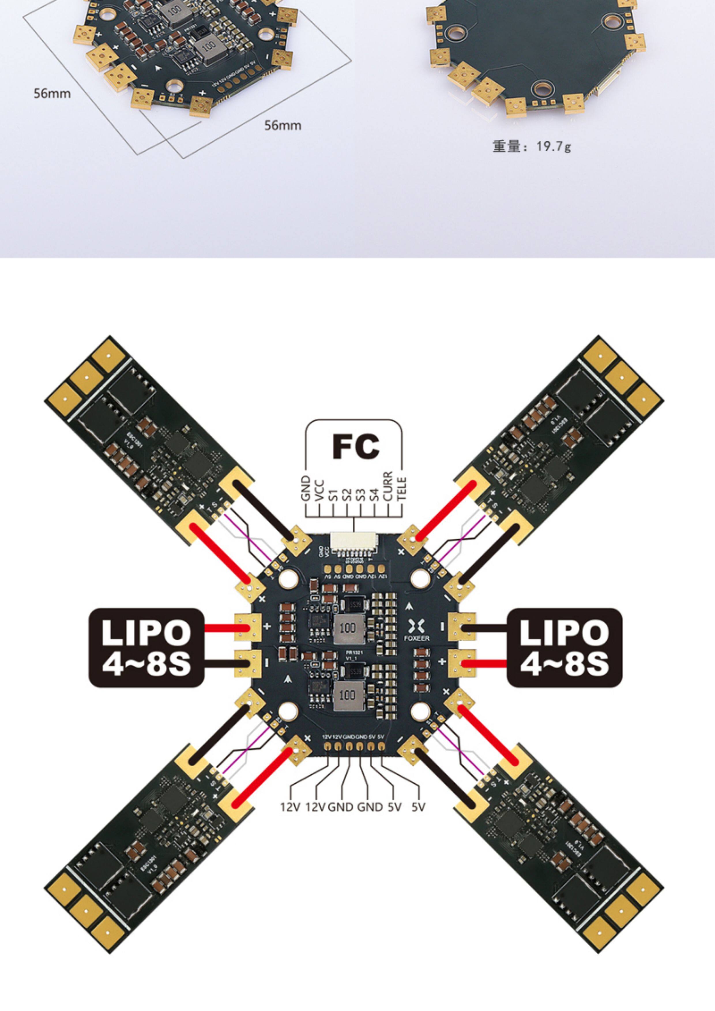 FOXEER 400A 4-8S PDB 分電板 安裝孔間距30.5mm