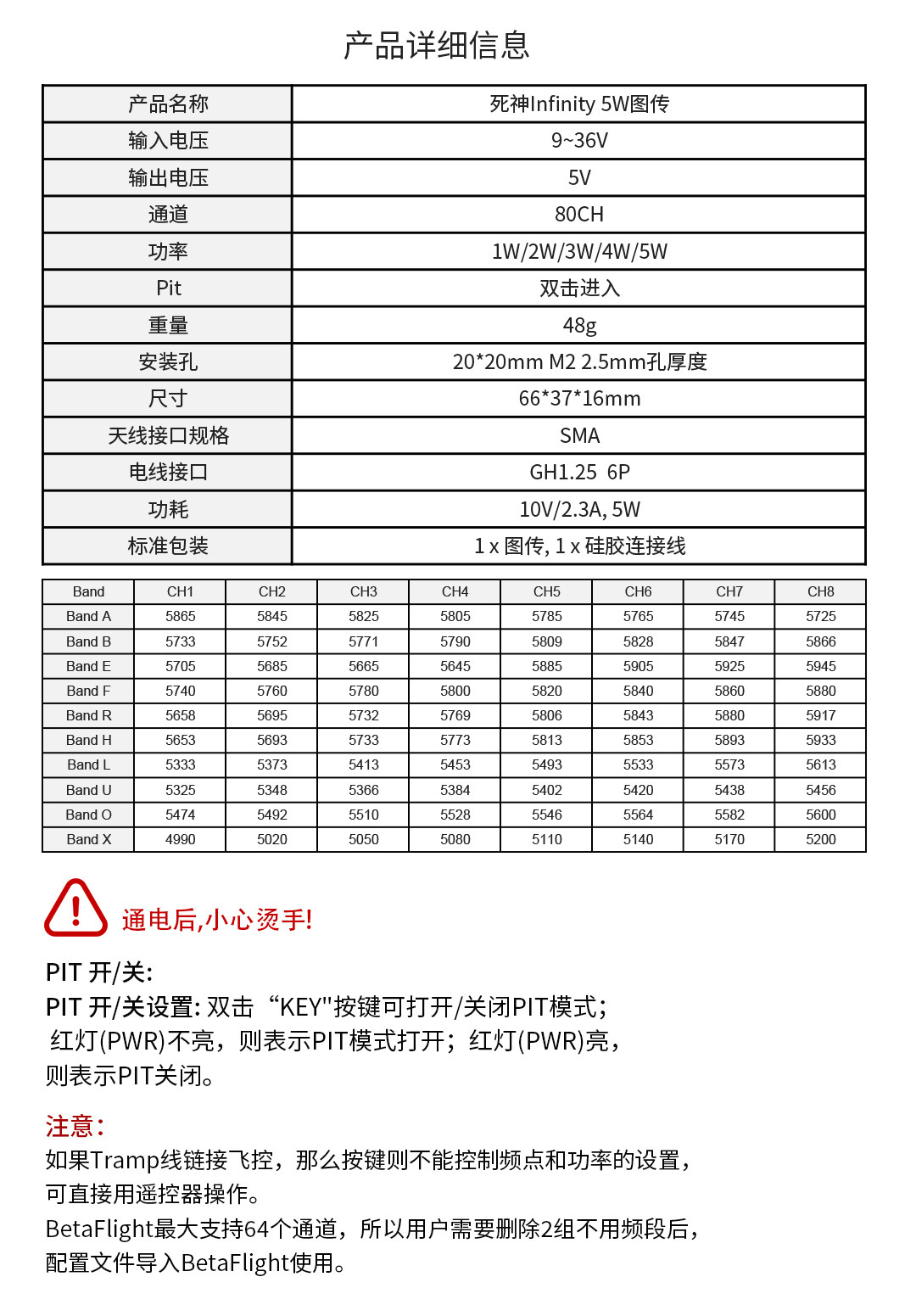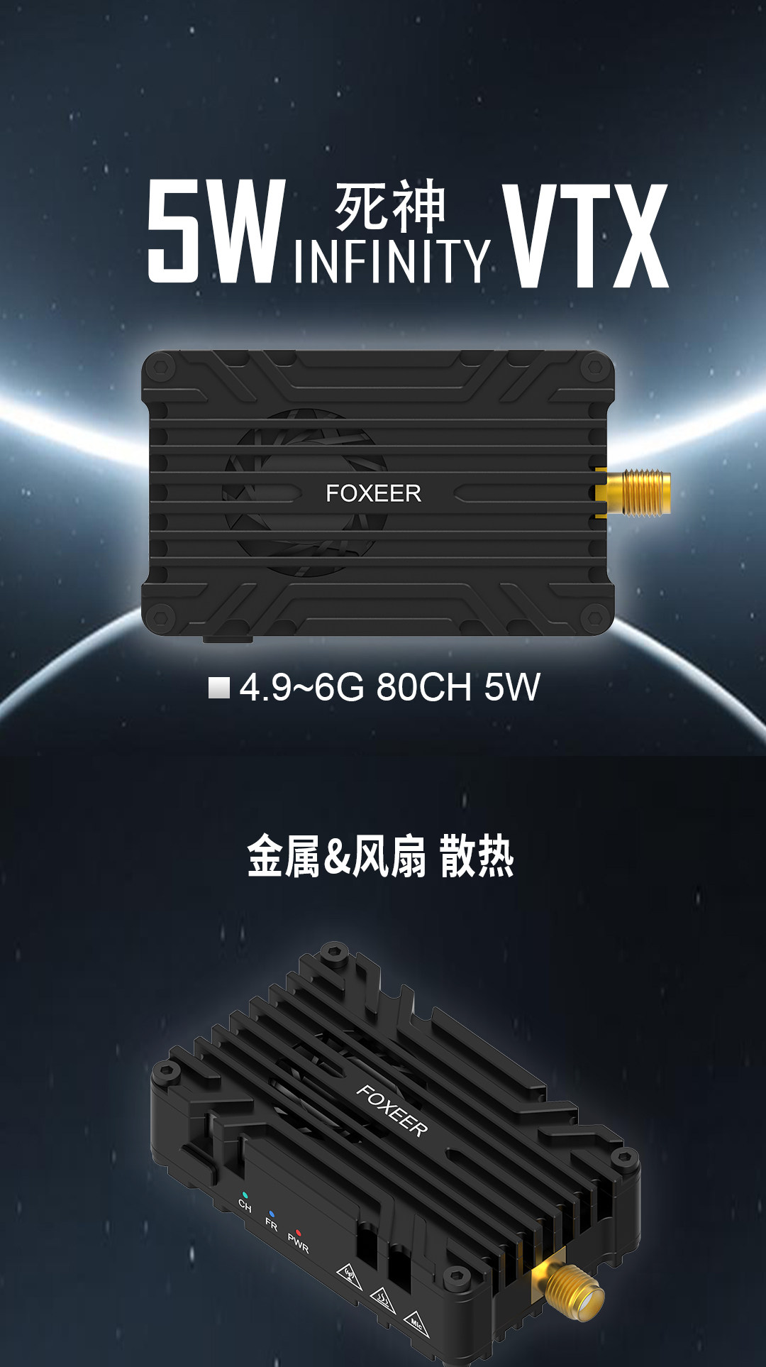 FOXEER 4.9G-6G 5W V2 大功率 發射TX圖傳 80CH 遠距 pit FPV 48g