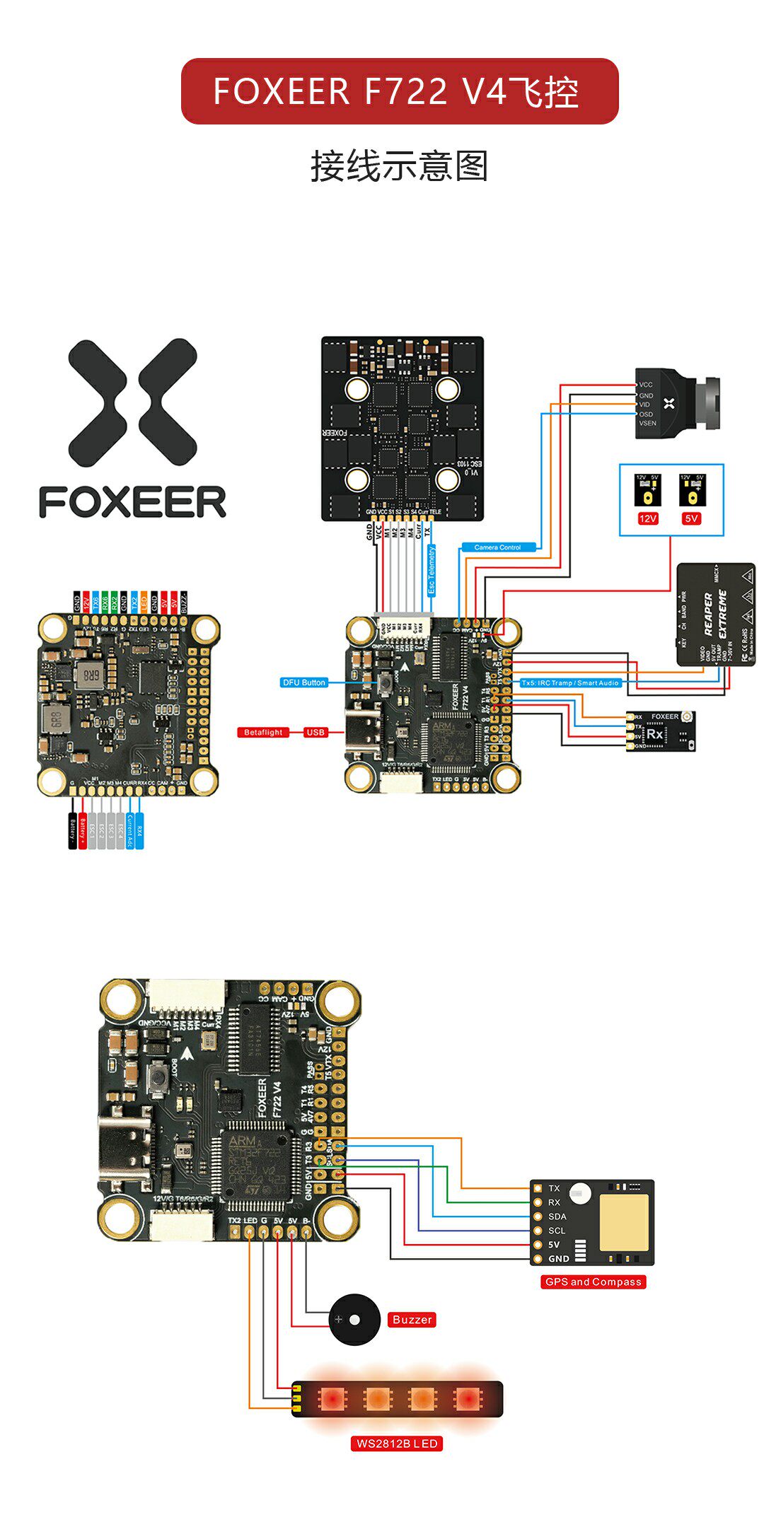 FOXEER 飛塔v2 F405飛控 55A電調 30.5mm 穿越機 4-8s雙攝像頭