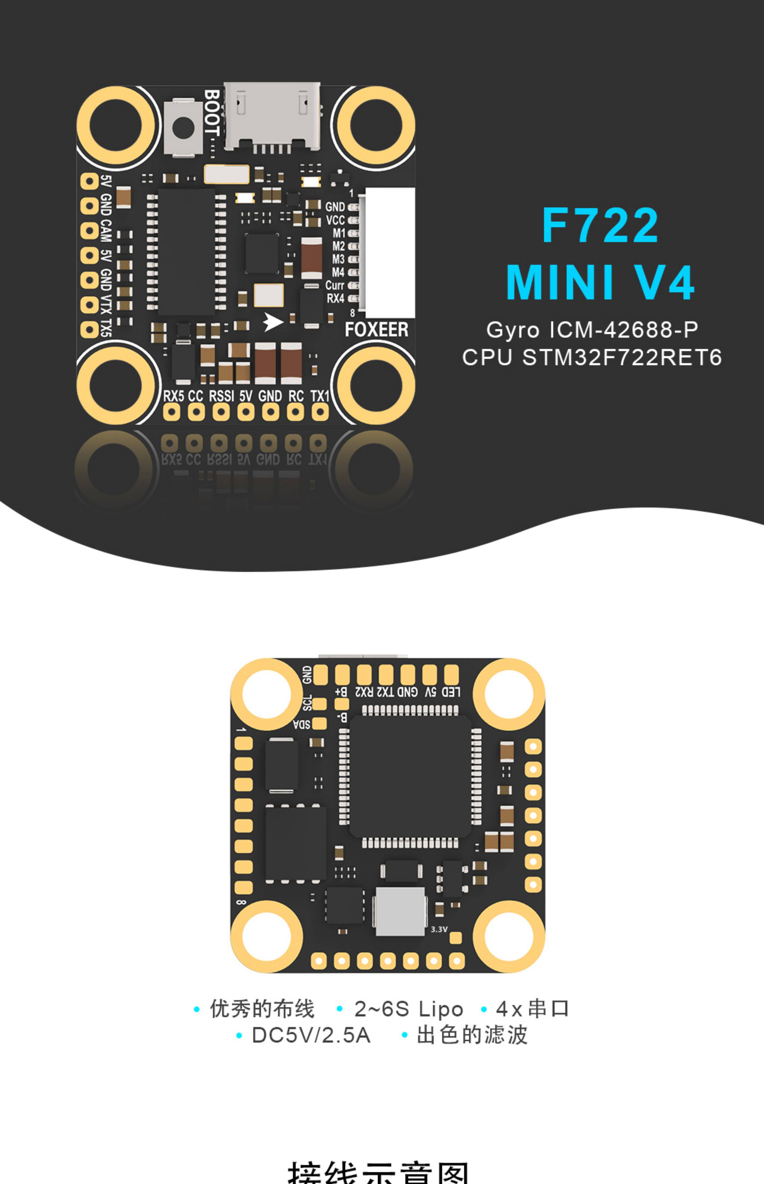 Foxeer F722 V4 mini 42688 飛控 4-6S 安裝孔20*20