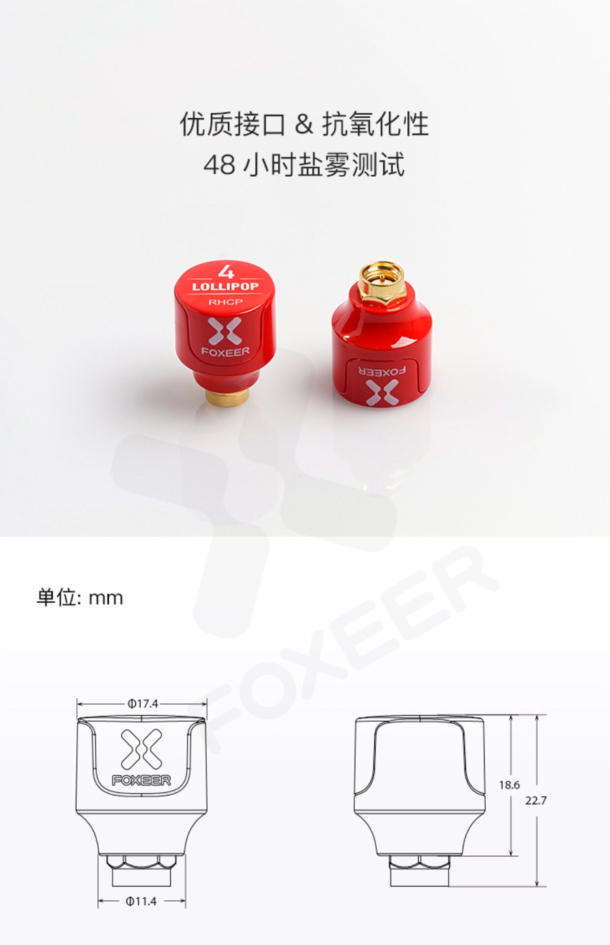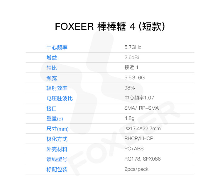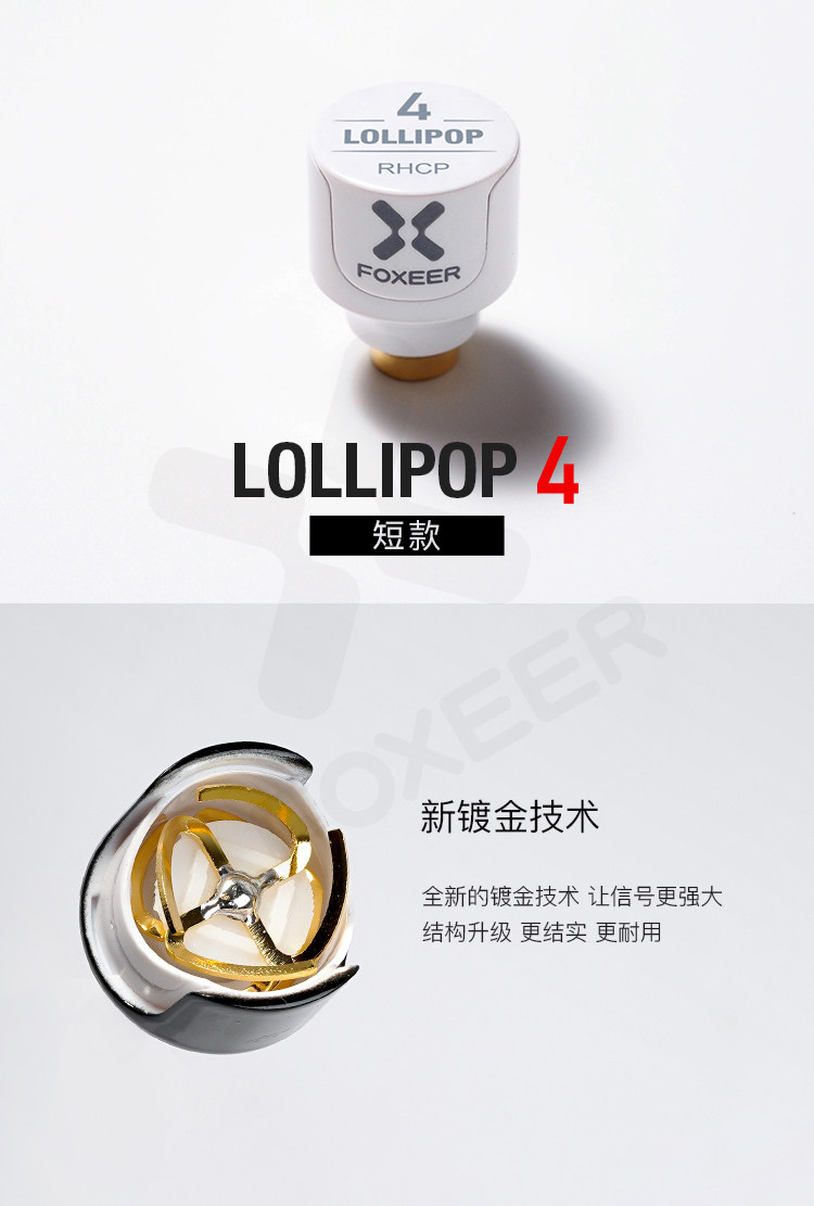 FOXEER FPV 棒棒糖4 短款天線 2.6dBi 發射接收 5.8GHz 4.8g 2根