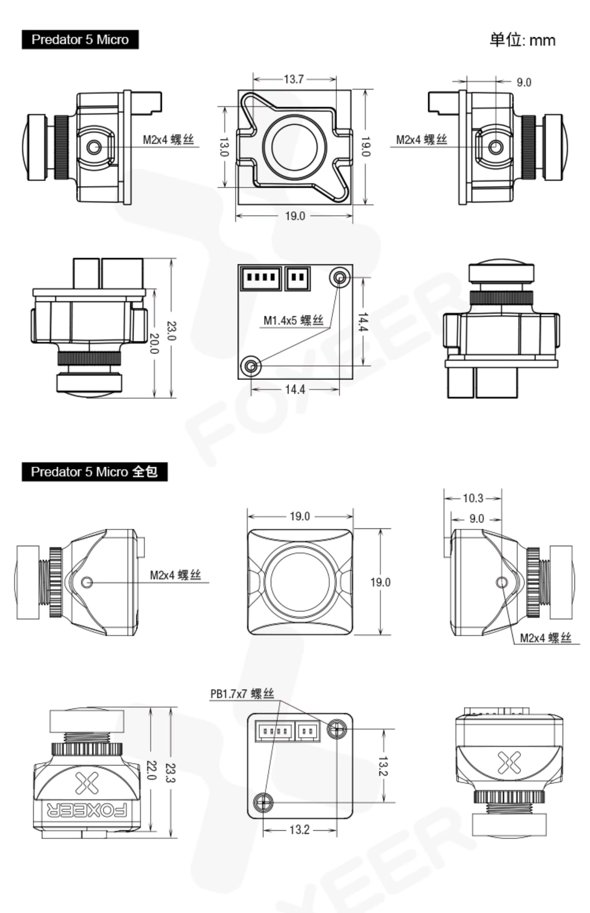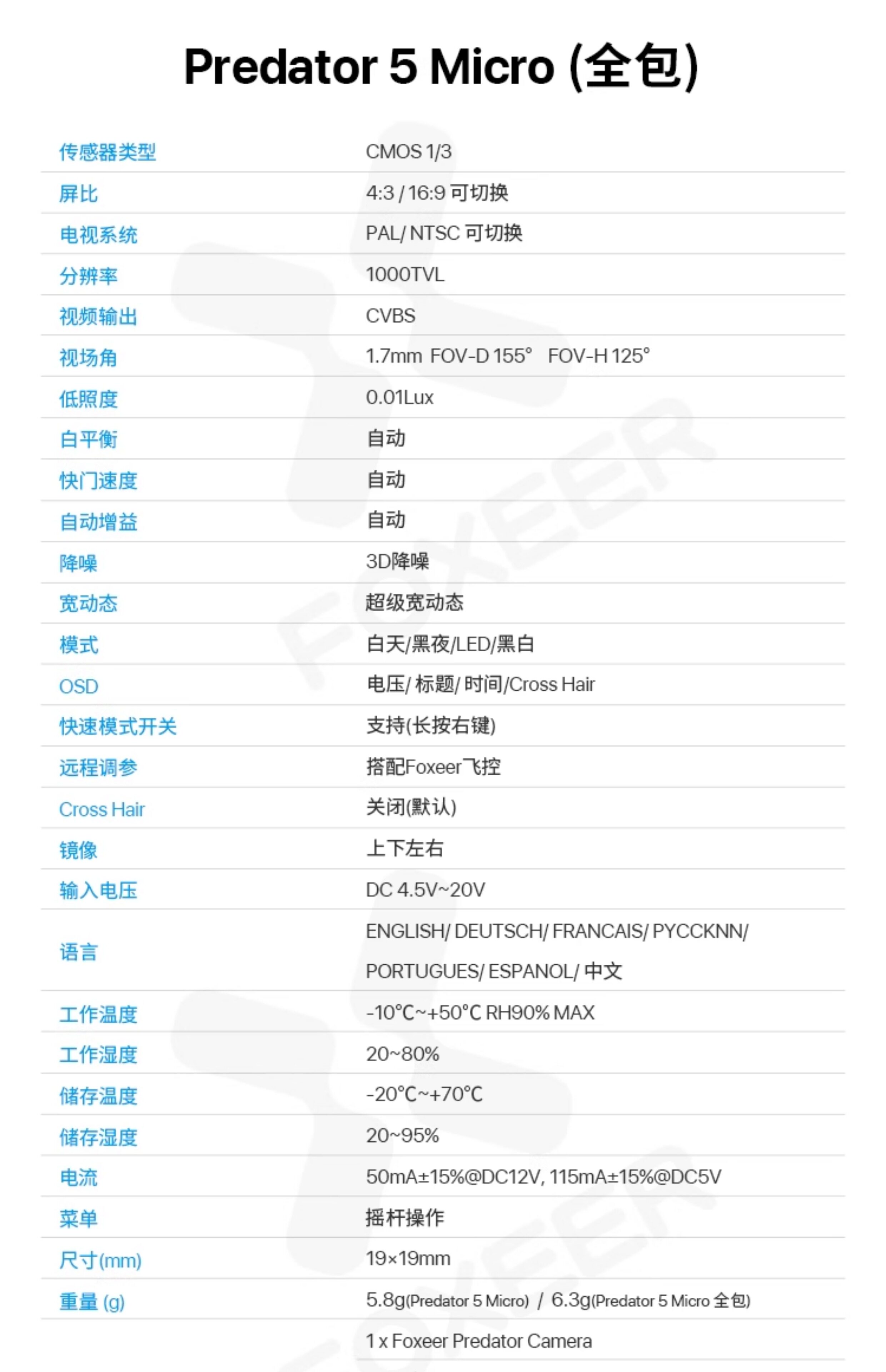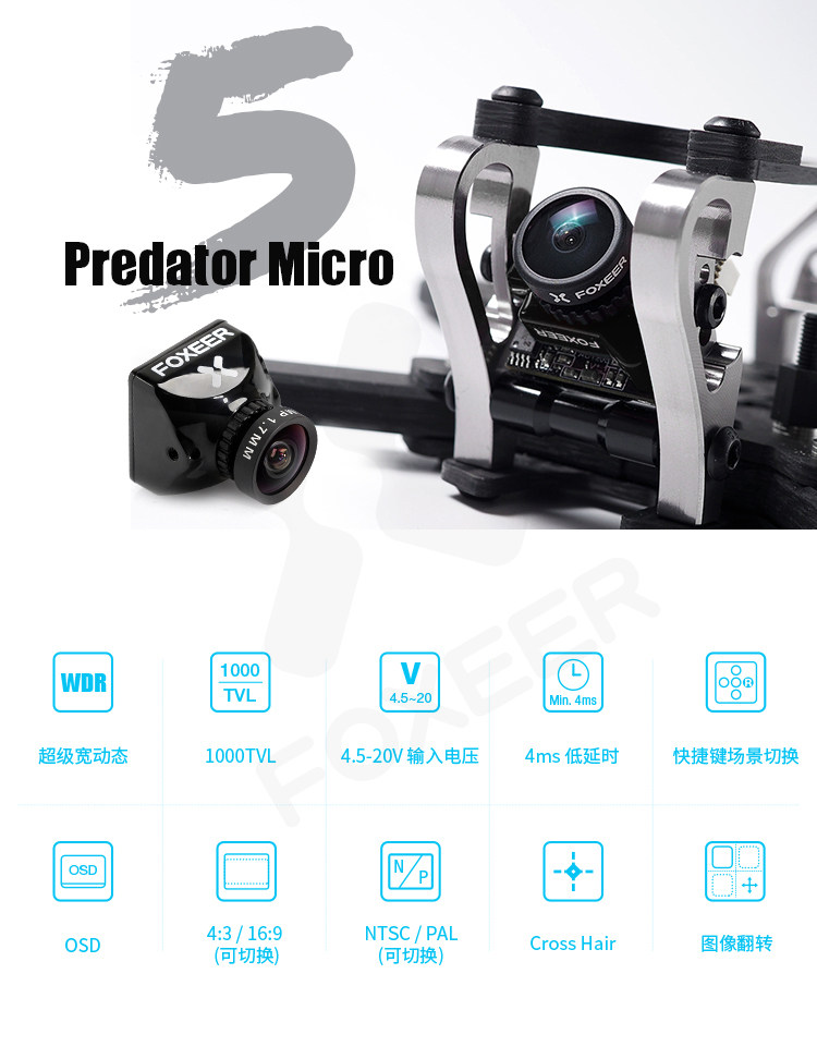 FOXEER micro彈弓5全包 競速攝像頭1000TVL 製式比例可調 WDR 1.7