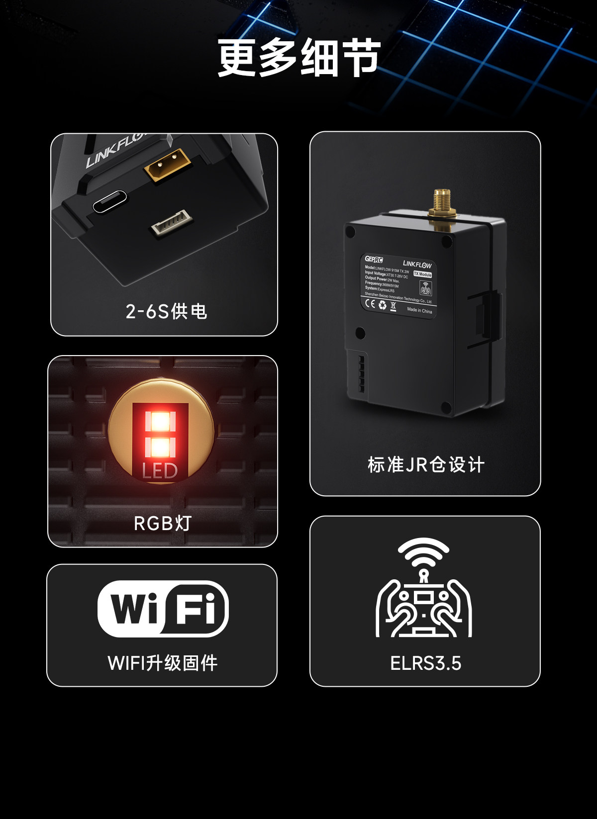 GEPRC格普 鏈動 LINKFLOW 915M TX 2W ELRS 高頻頭