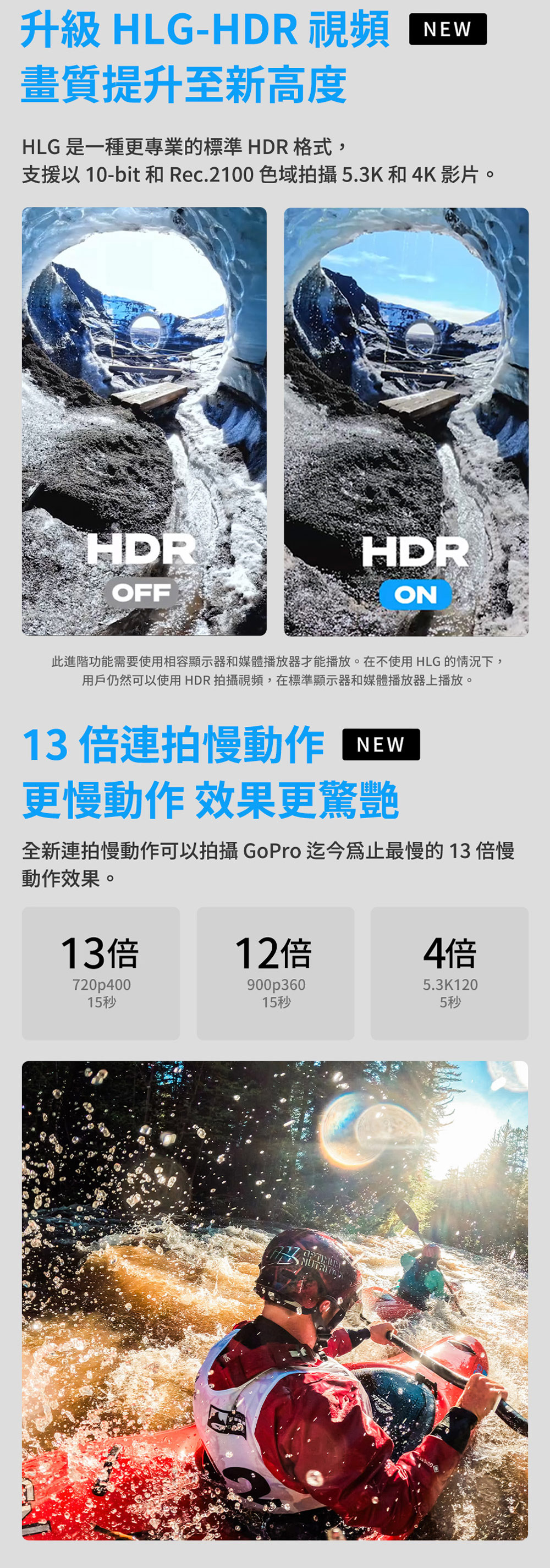 ・連續快拍慢動作:720p400/900p360/5.3K120