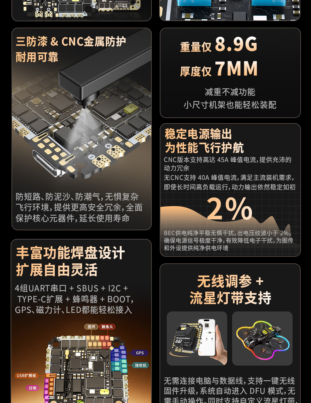SpeedyBee F405AIOV2 35/40A 8Bit 25.5x25.5 3-6S一體航模控製器